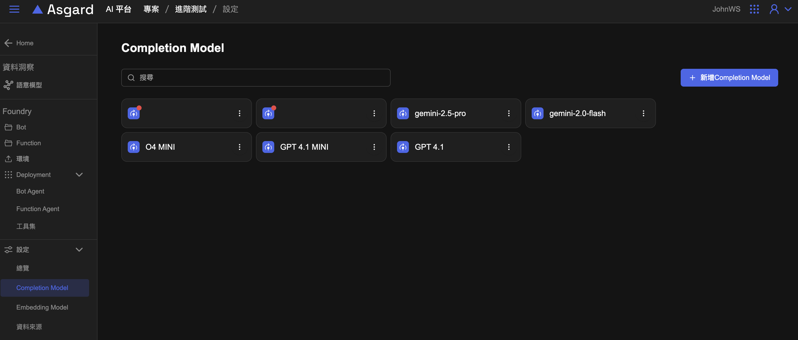 新增 Completion Model以新增一個新的模型設定。 - 請依照以下資訊填寫欄位內容: