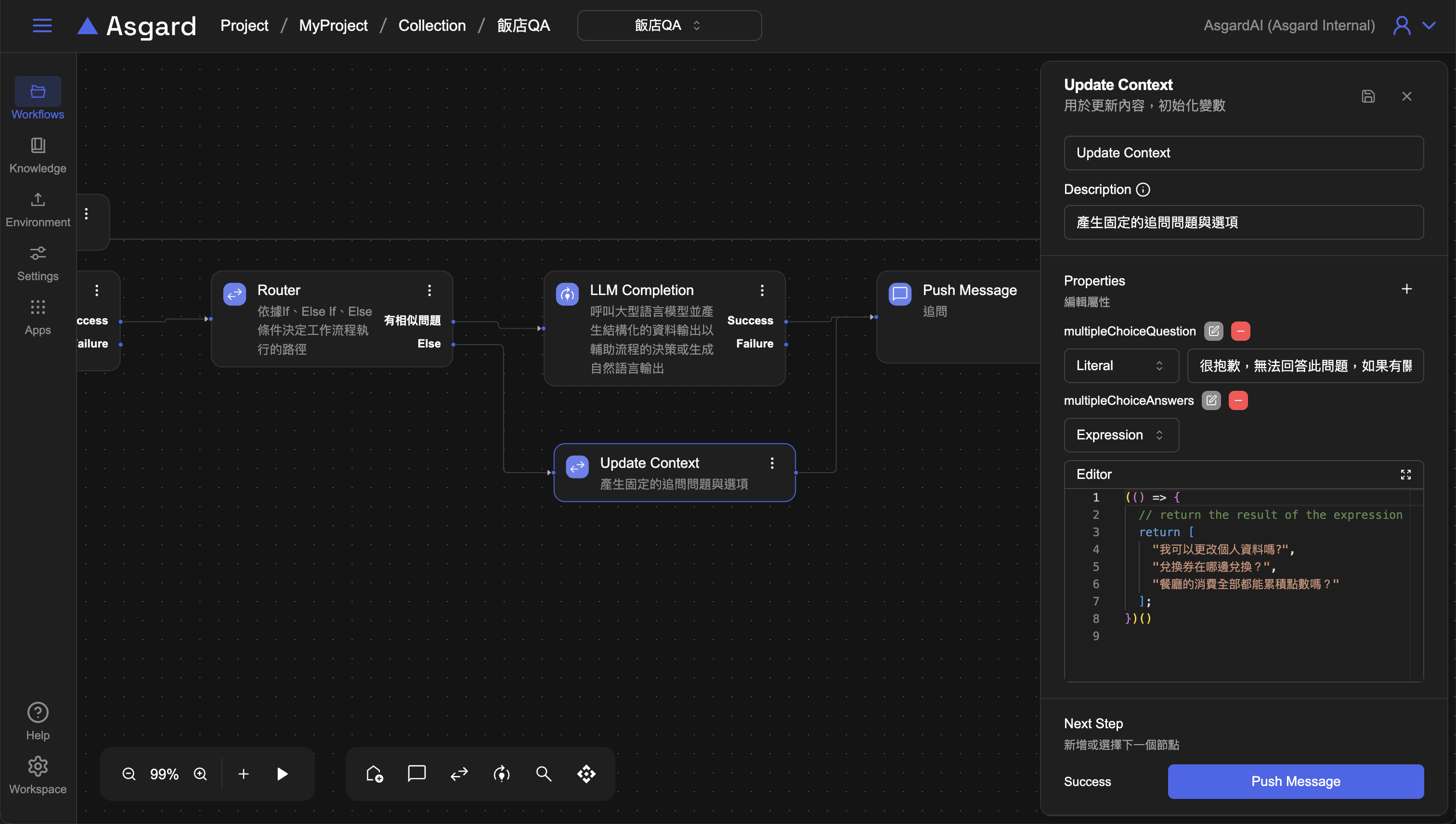 5.Update Context 產生固定的追問問題與選項來處理 Else 條件