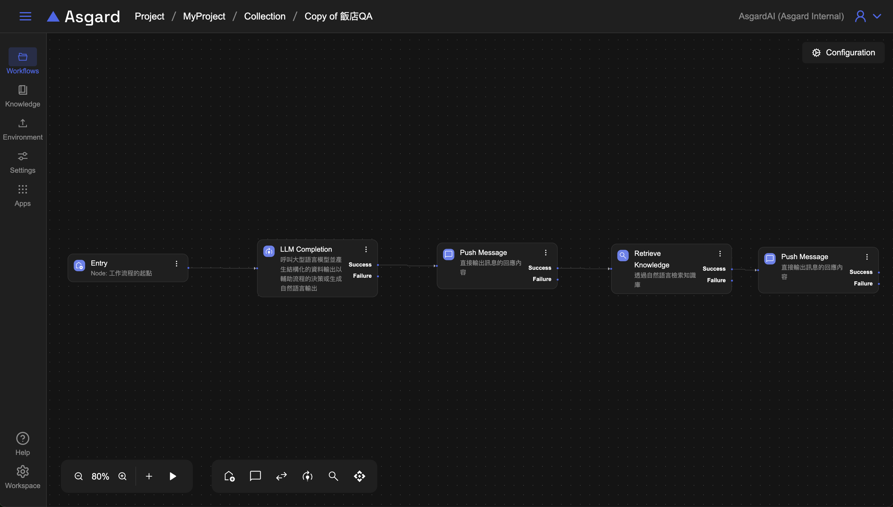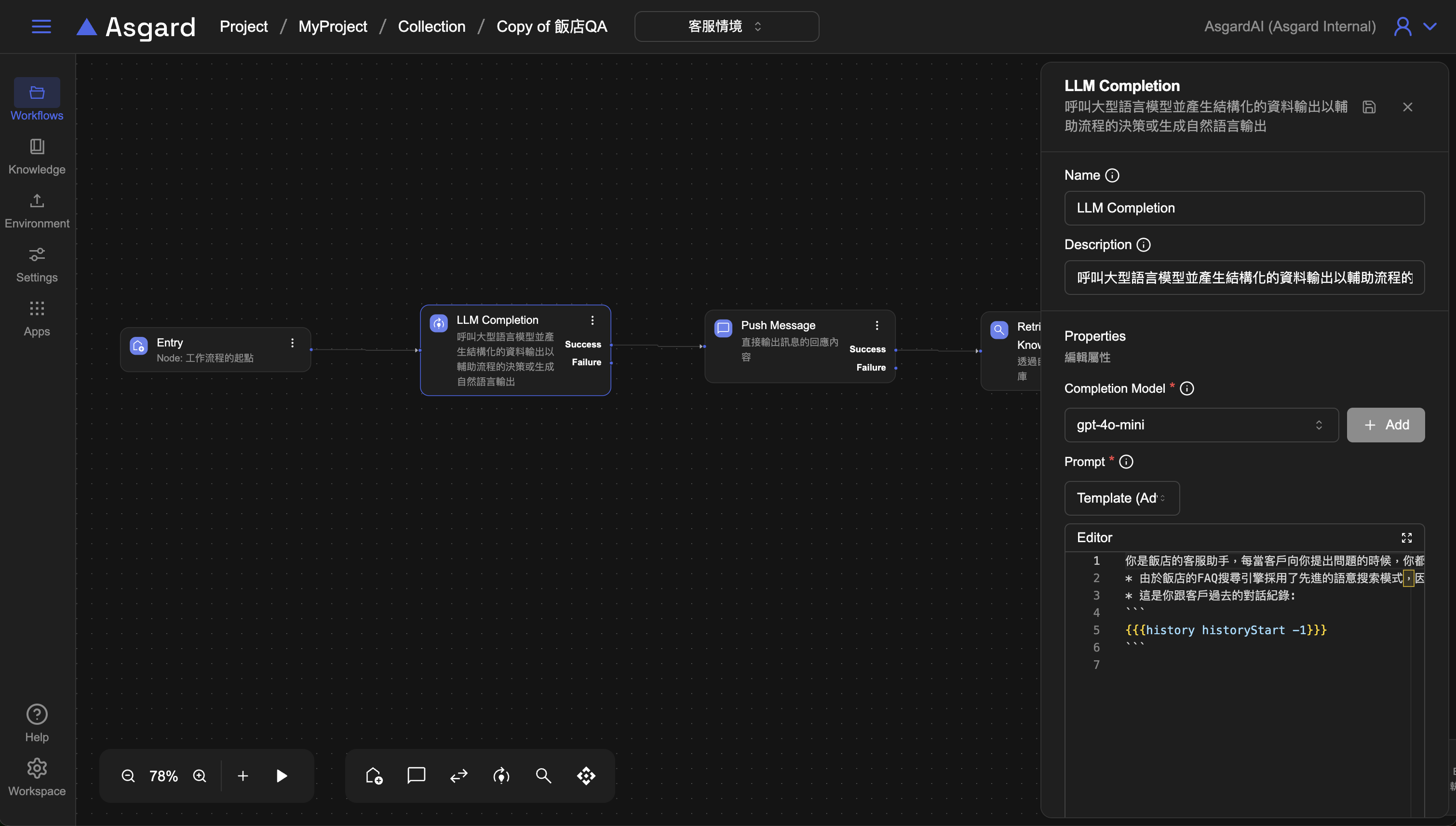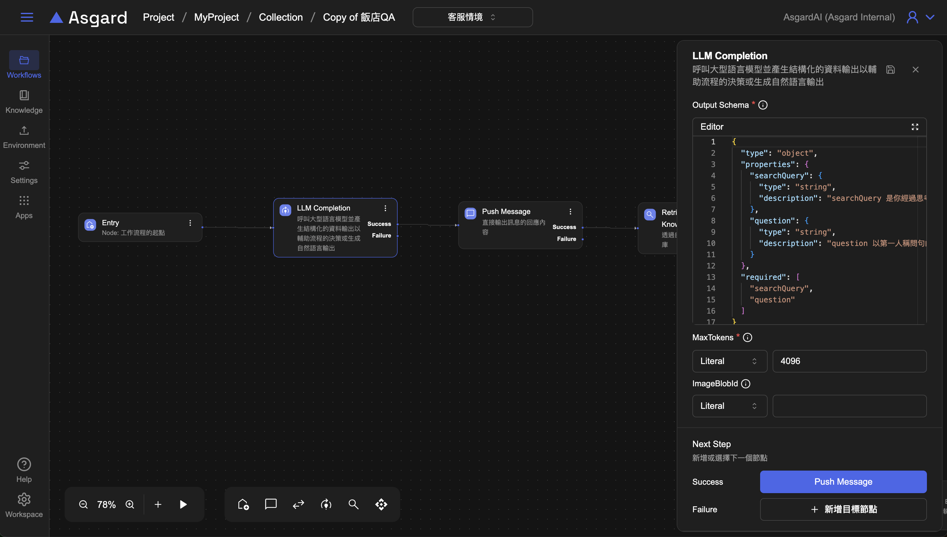 Note: 注意可能會有 AI 找不到回答的情境,因此下一篇的範例我們會加上 Router、Update Context、Stream LLM Completion Message 去處理不同路徑的流程,近一步完善 Workflow。