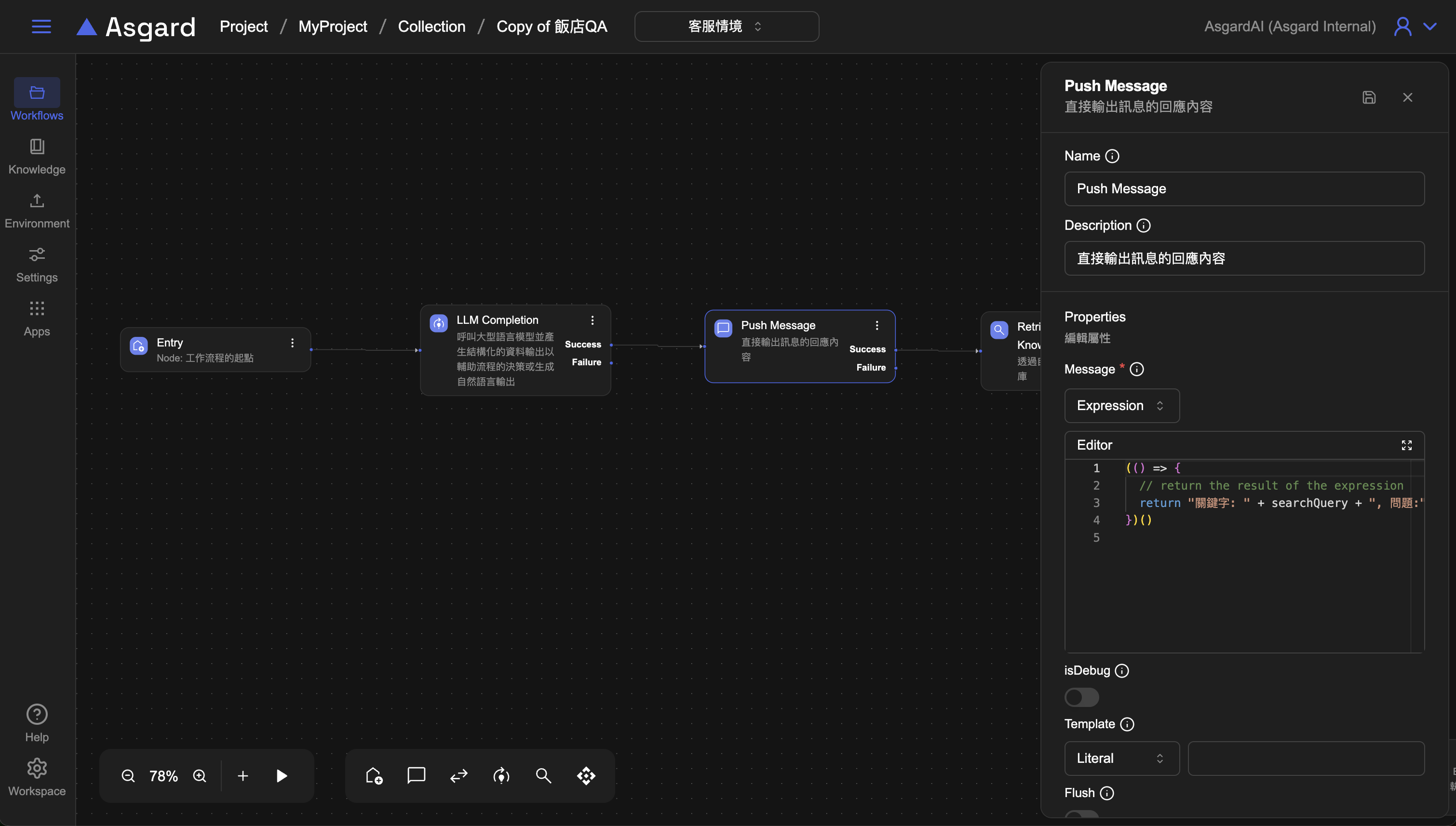 將 Retrieve Knowledge 的內容使用 Push Message 印出來。