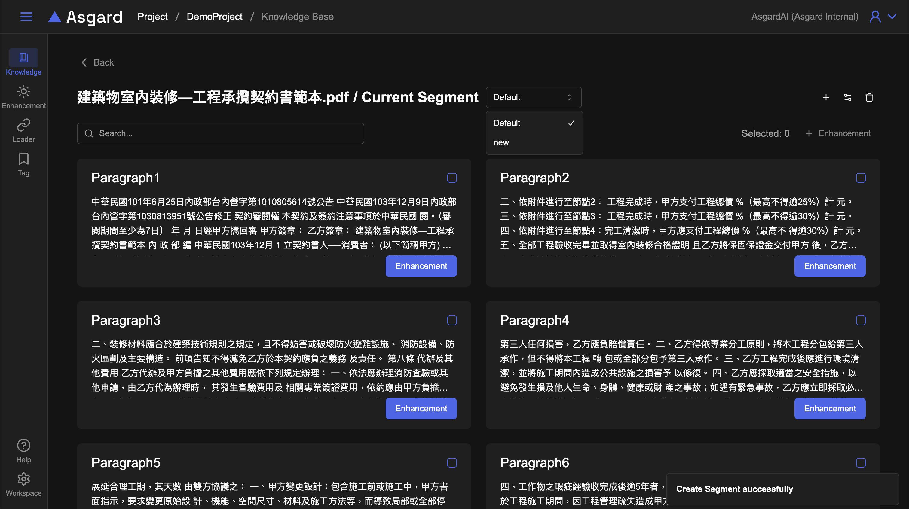 分段設定提供了彈性的知識處理方式,用戶可以使用預設的自動設定或調整不同的分段設定以找到最佳化的處理結果。