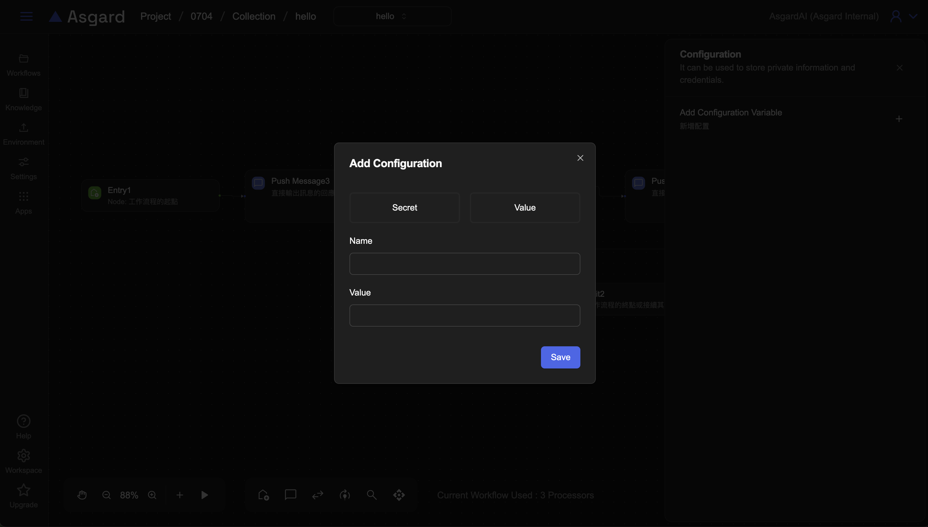 Workflow Configuration 允許您設定自訂欄位值,這些欄位可在流程中多次引用,提升流程靈活性與維護效率。例如產品名稱、API 金鑰等常用資訊,都可以透過自訂欄位集中管理。