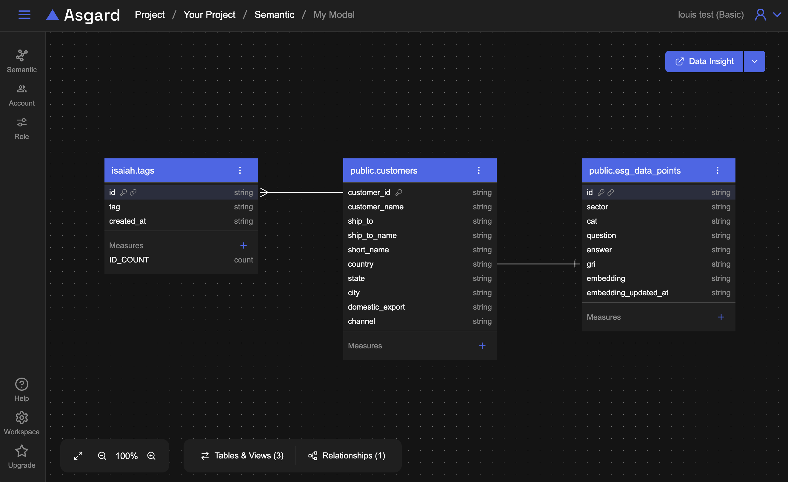 直接點擊開啟 Data Insight 功能,參考Data Insight簡介。也可以點擊箭頭開啟 Edit Model 編輯當前 Semantic Model 基本資訊,參考管理語意資料模型