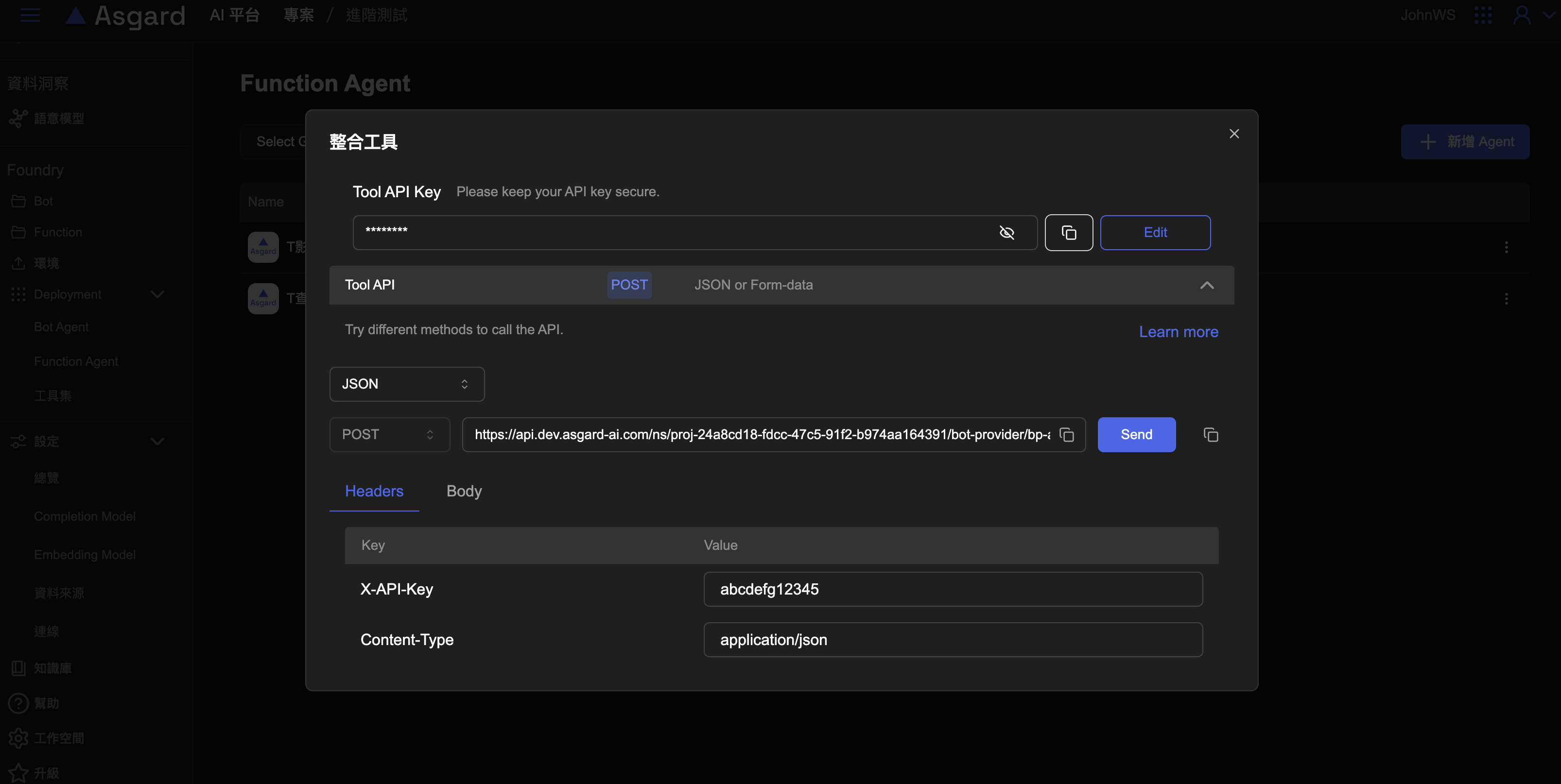 X-API-KEY請輸入你在建立 Integration 時所設定的 API Key,用於身份驗證