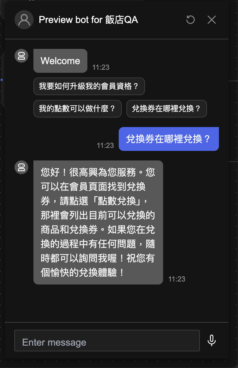 此時再次預覽可以看到更簡潔的對話回覆。