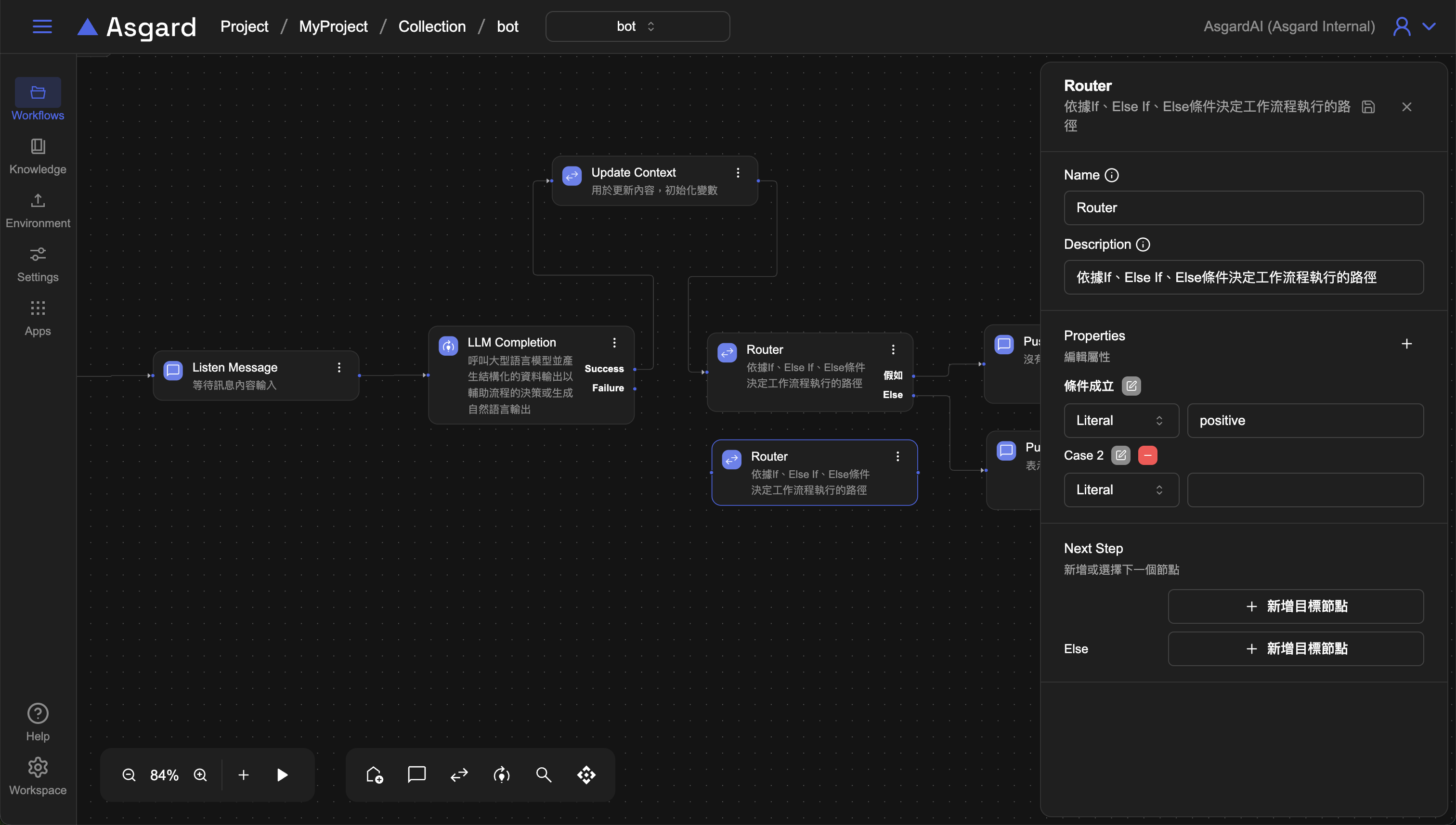 Router 新增一個 Router 依據 If, Else 等條件來決定工作流程執行的路徑。