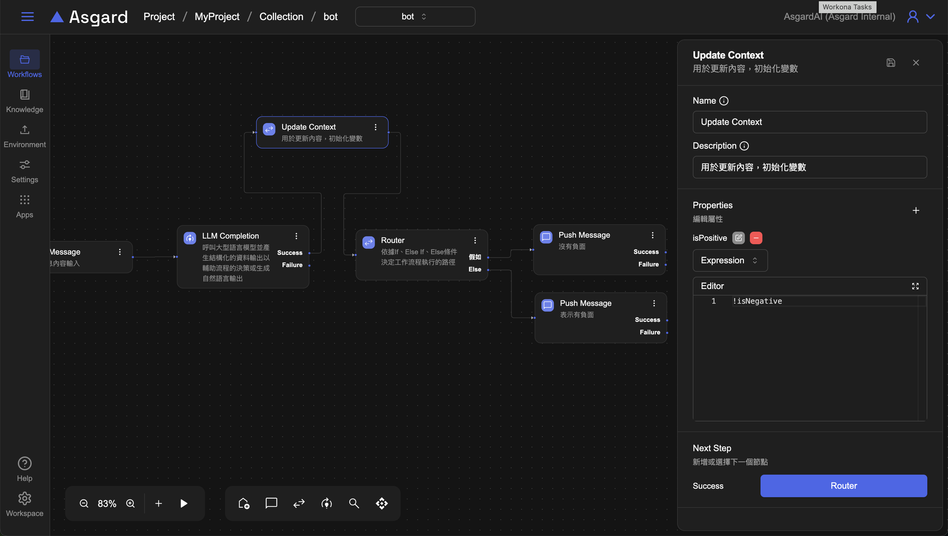 Update Context Processor 用於更新內容,初始化變數。預設為空,需要手動新增變數,以下就情緒判斷助手的工作流程為例來說明如何設定。