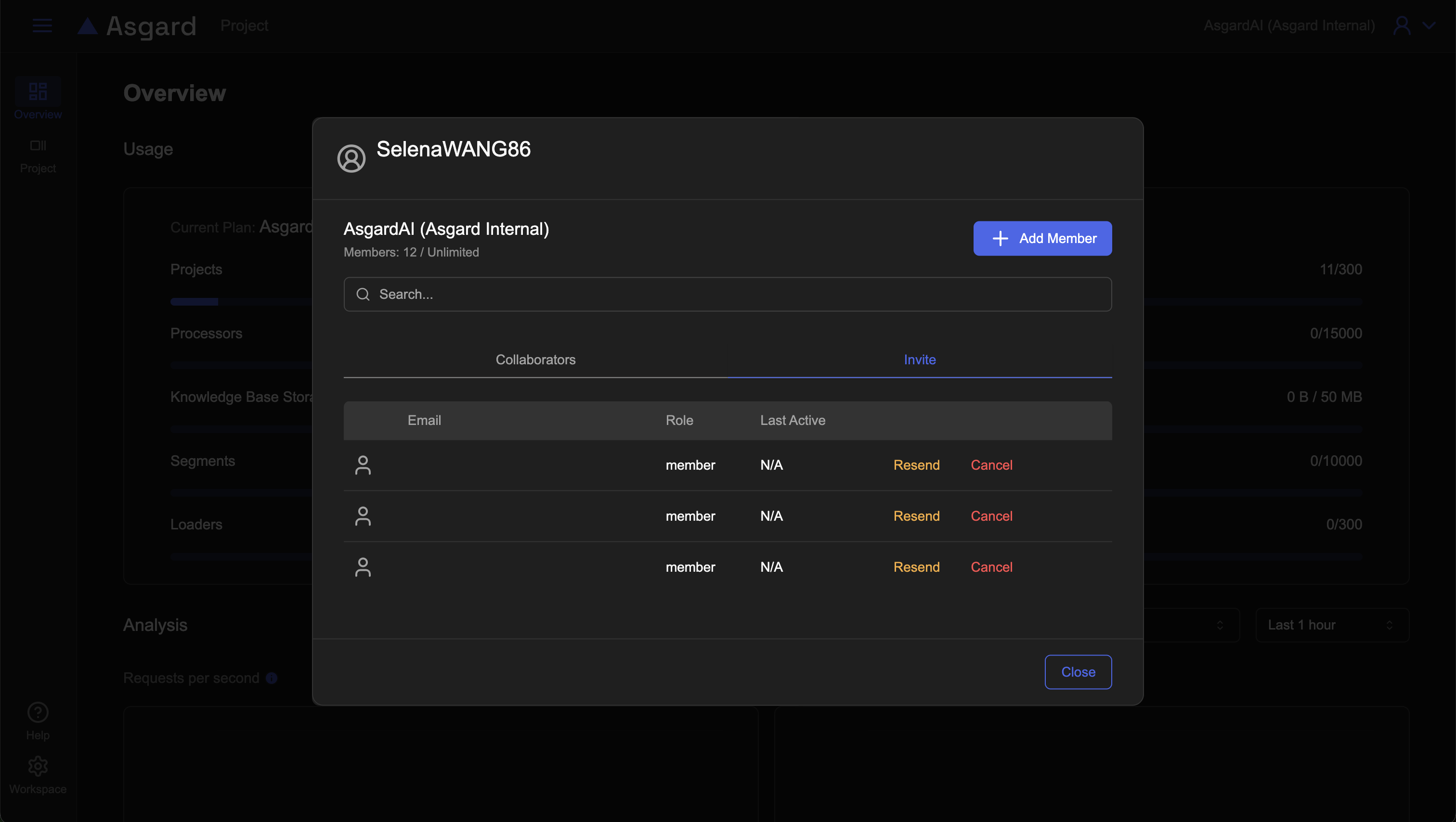 點擊Add Member並輸入email即可完成邀請。