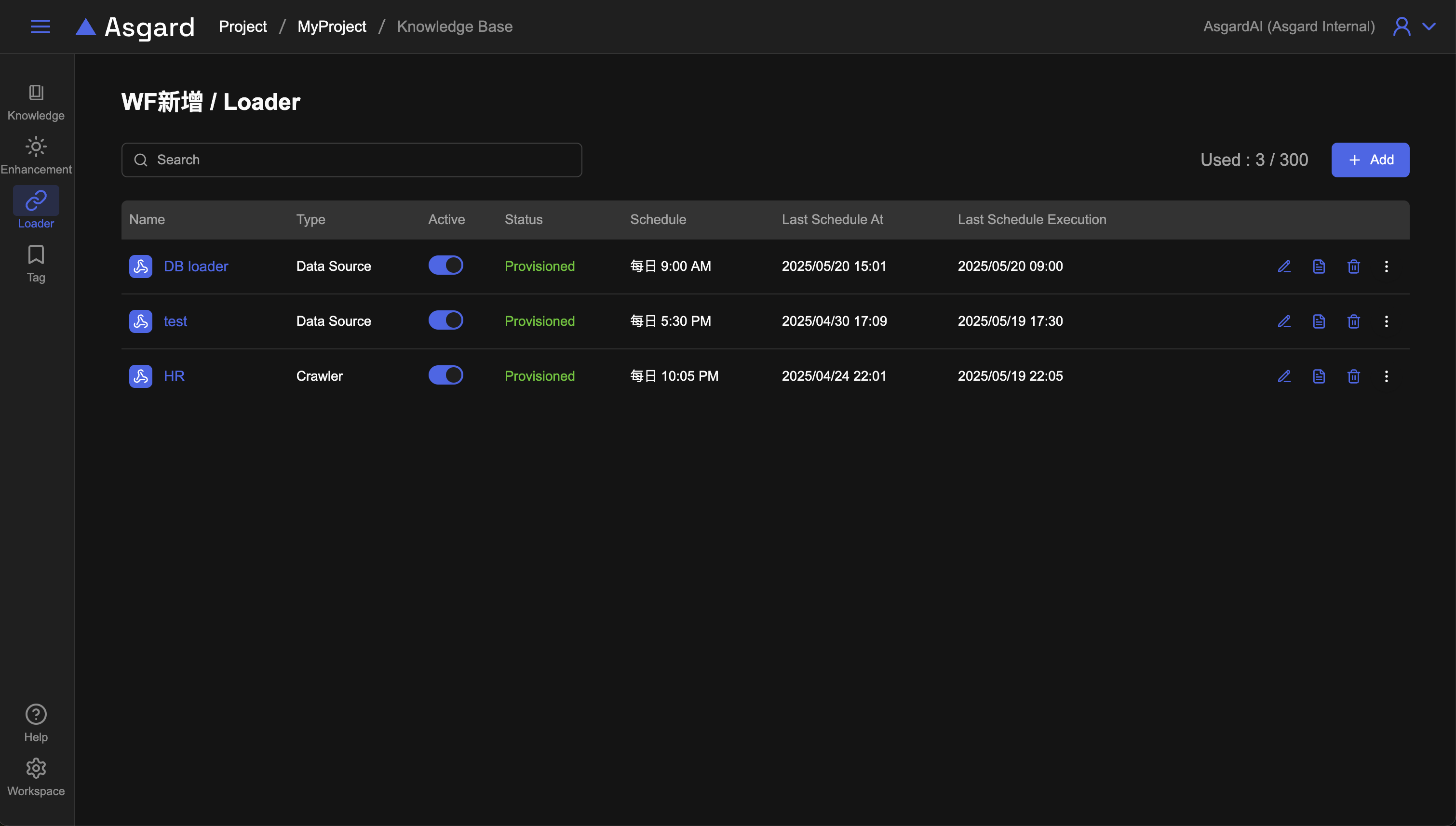 Asgard 提供了自動化的擷取知識載入(Loader)的功能,能夠讓您一次設定好資料的來源與排程,後續皆交由系統自動化幫您更載入即可,省時有效率。
