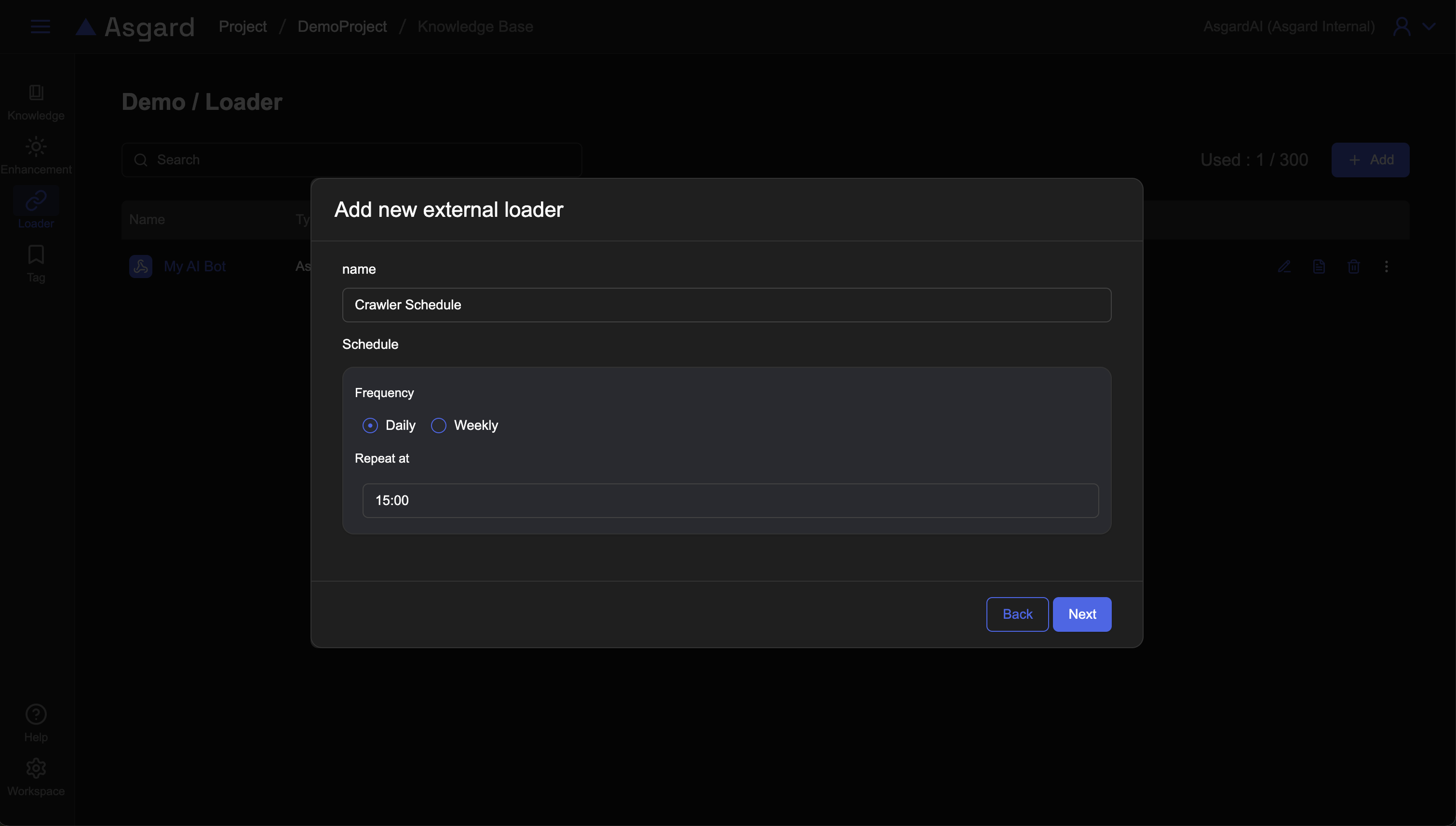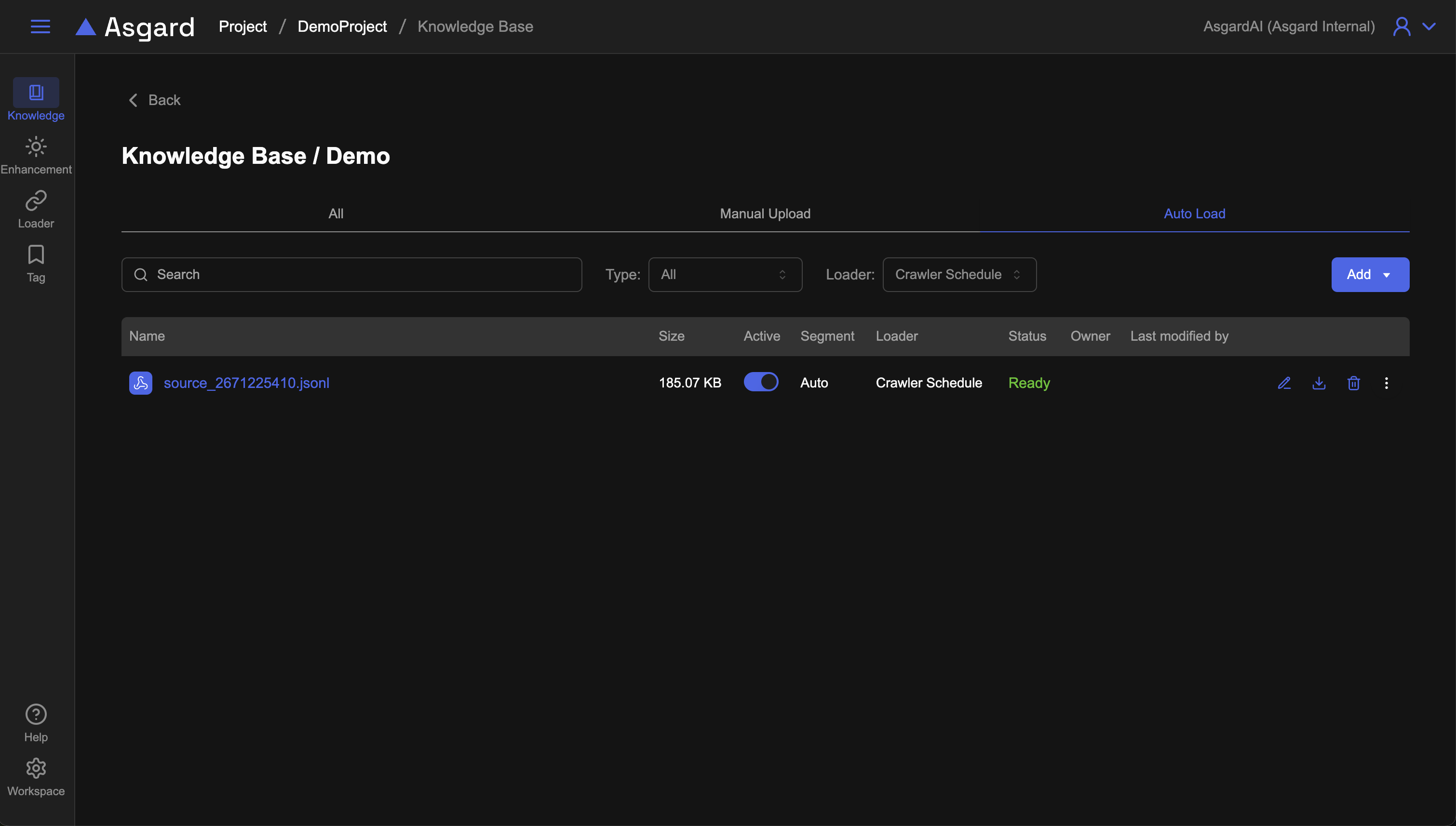 Asgard 提供了自動化的擷取知識載入(Loader)的功能,能夠讓您一次設定好資料的來源與排程,後續皆交由系統自動化幫您更載入即可,省時有效率。