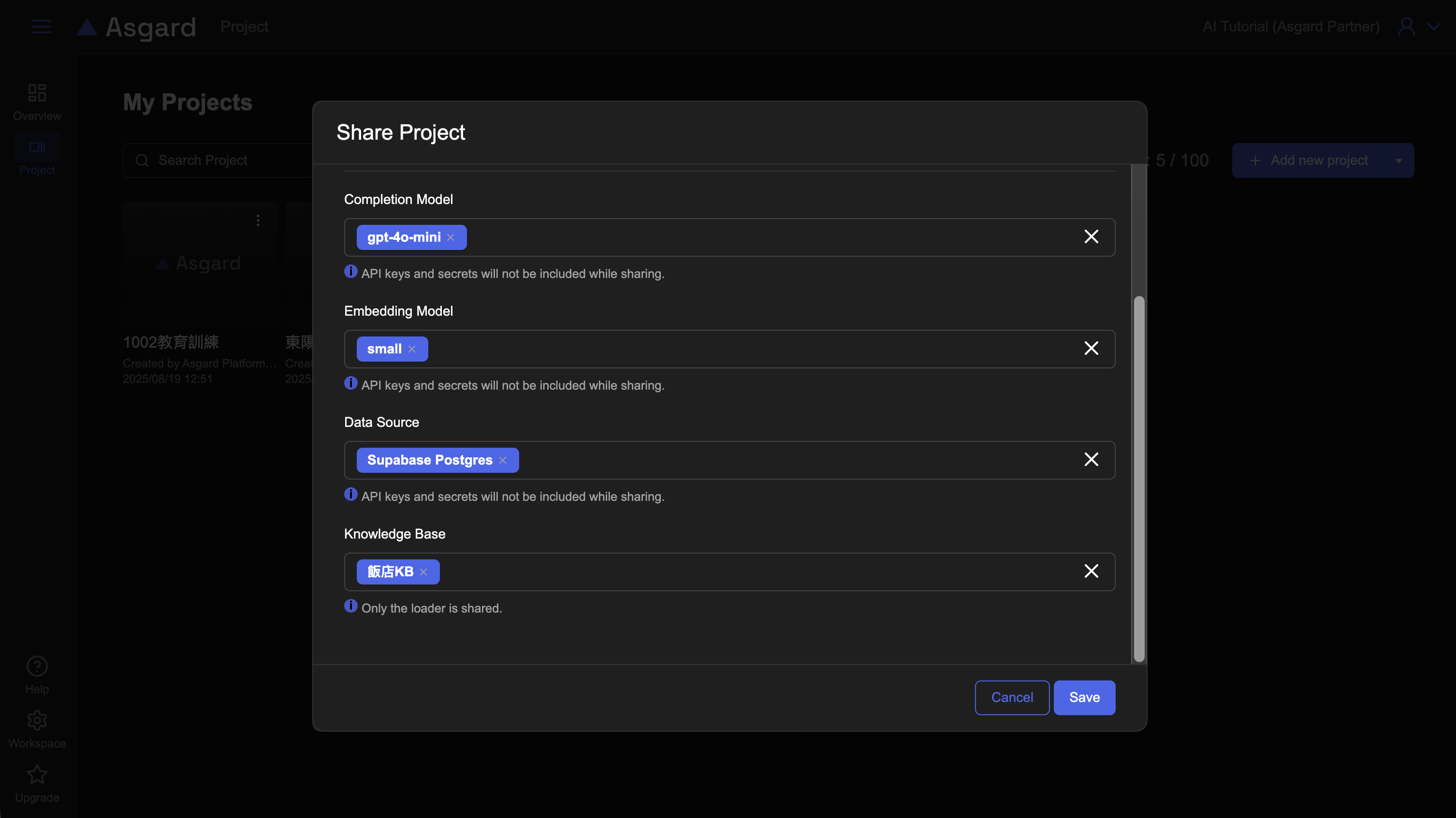 Asgard 提供了快速分享 Project 的功能,讓 Project 能夠跨 Workspace 分享,提高效率。
